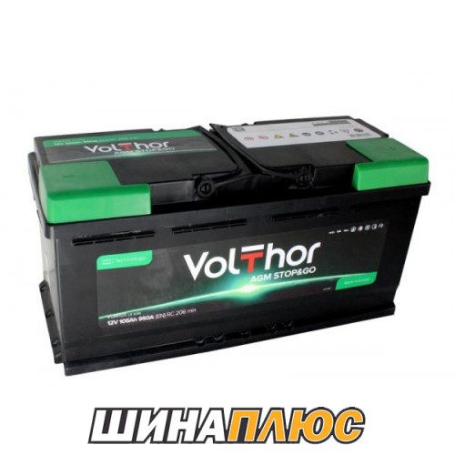 Аккумулятор стартерный 105 VOLTHOR AGM 394x175x190 950A. Обратная полярность